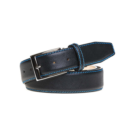 High-quality Saffiano leather belts made for durability and style for the modern businessman, athlete or artist. This black Saffiano belt will go with any look and quickly become a staple to your wardrobe. Customize yours today and enjoy free shipping.