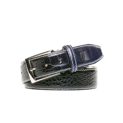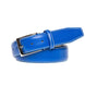 - 100% full-grain cobalt or black Italian calf leather belt with nubuck lining and white stitching